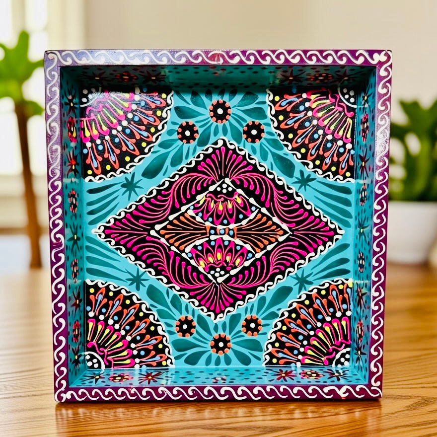 This elegant Fine Art Square Tray is a beautifully handcrafted piece that reflects timeless artistry and skilled craftsmanship. Designed in a balanced square shape, the tray is adorned with intricate fine art patterns and detailed hand-painted work, giving it a refined and premium look.