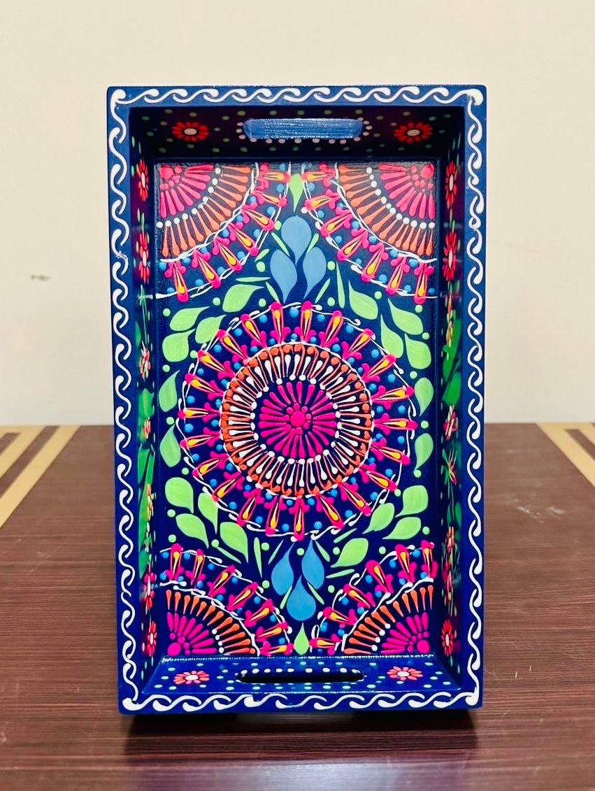 This charming Mini Fine Art Tray is a beautifully handcrafted piece that combines elegance with cultural artistry. Despite its small size, the tray features intricate fine art detailing and hand-painted patterns, making it a standout decorative and functional item.