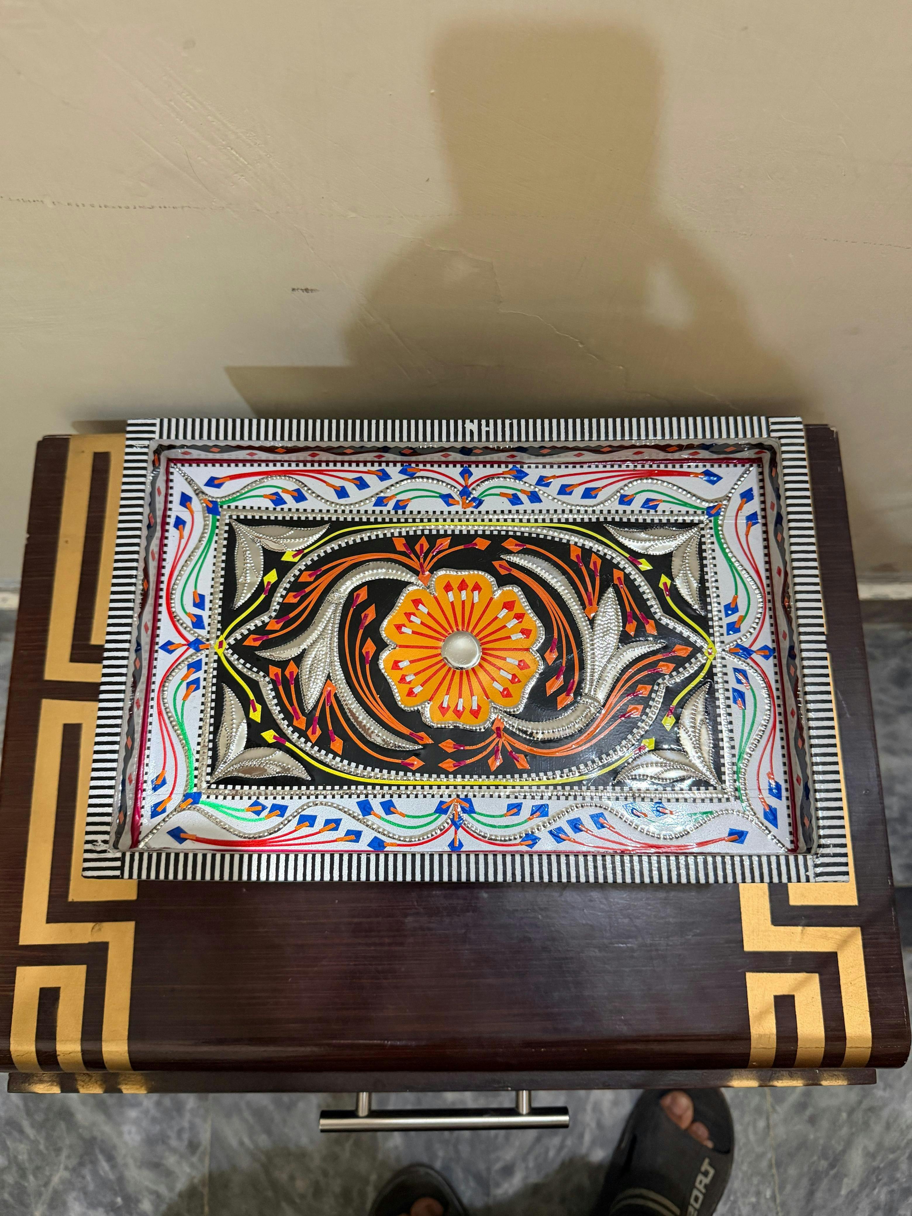 This thaila tray with moving wheels is designed for effortless mobility and convenient serving. Featuring a sturdy tray base and smooth-rolling wheels, it allows you to easily transport snacks, bowls, or beverages from one place to another. Perfect for home use, gatherings, or parties, it combines practicality with style for a seamless serving experience.